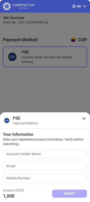 Description - PSE (Pagos Seguros en Línea) is a real-time online payment system in Colombia that enables secure, instant bank transfer payments - customers simply log in into their internet banking and authorize pre-populated payment details.